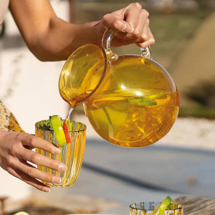 Stylish, elegant pitcher with an attractive round shape and an ergonomic handle for a firm, easy grip. Its distinctive, elegant design is a fine combination of style and function.