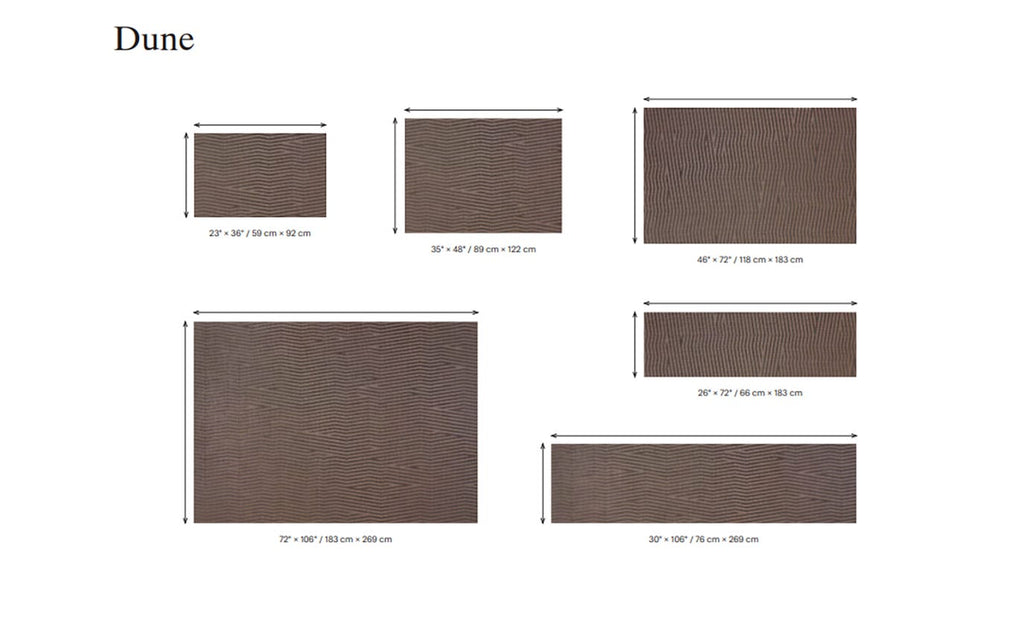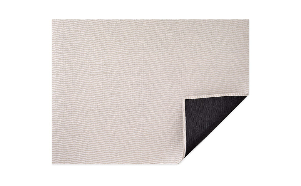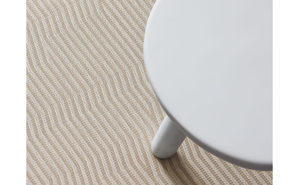 Tonal hues and softened angles bring a calming character to Dune, named for its resemblance to lines etched in sand. The Chilewich design team combined multiple weave structures to achieve an especially tactile surface, with meandering stripes of varying heights. The large scale of Dune's repeat makes each placemat unique.