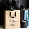 Compliment the perfect gift with this 10” x 8” x 4” kraft paper gift bag, featuring a cloth handle (no strings attached!).