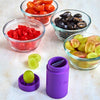 The Grape Cutter is the ultimate kitchen tool for safely and effortlessly slicing grapes, cherry tomatoes, and pitted olives into halves or quarters. Designed with sharp stainless-steel blades and an ergonomic grip, it provides precision cutting while keeping fingers safe. The compact design includes a cap that doubles as a secure base, ensuring stability during slicing.