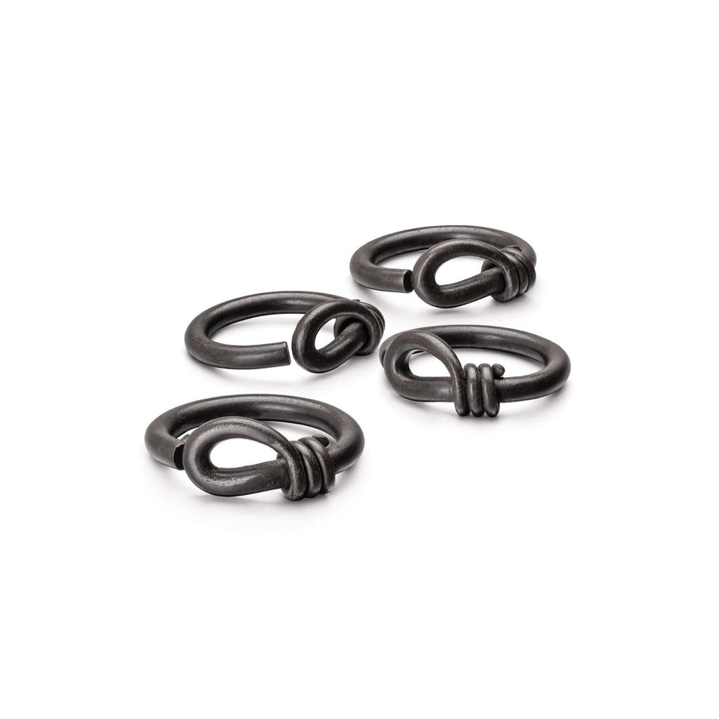 Taking inspiration from traditional New England blacksmithing, we designed these knotted steel napkin rings with a blackened steel finish for a rustic wrought-iron look. We think they’re the perfect complement to beautiful seasonal linens. Exclusively ours.