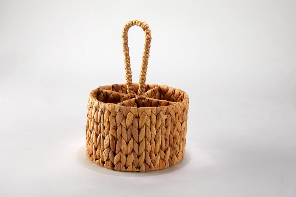 The Hyacinth Flatware Caddy seamlessly combines fashion and function, crafted from the finest hyacinth fibers. This piece features a rustic, timeless elegance and includes four spacious sections for storage, making it the perfect companion for summer picnics!