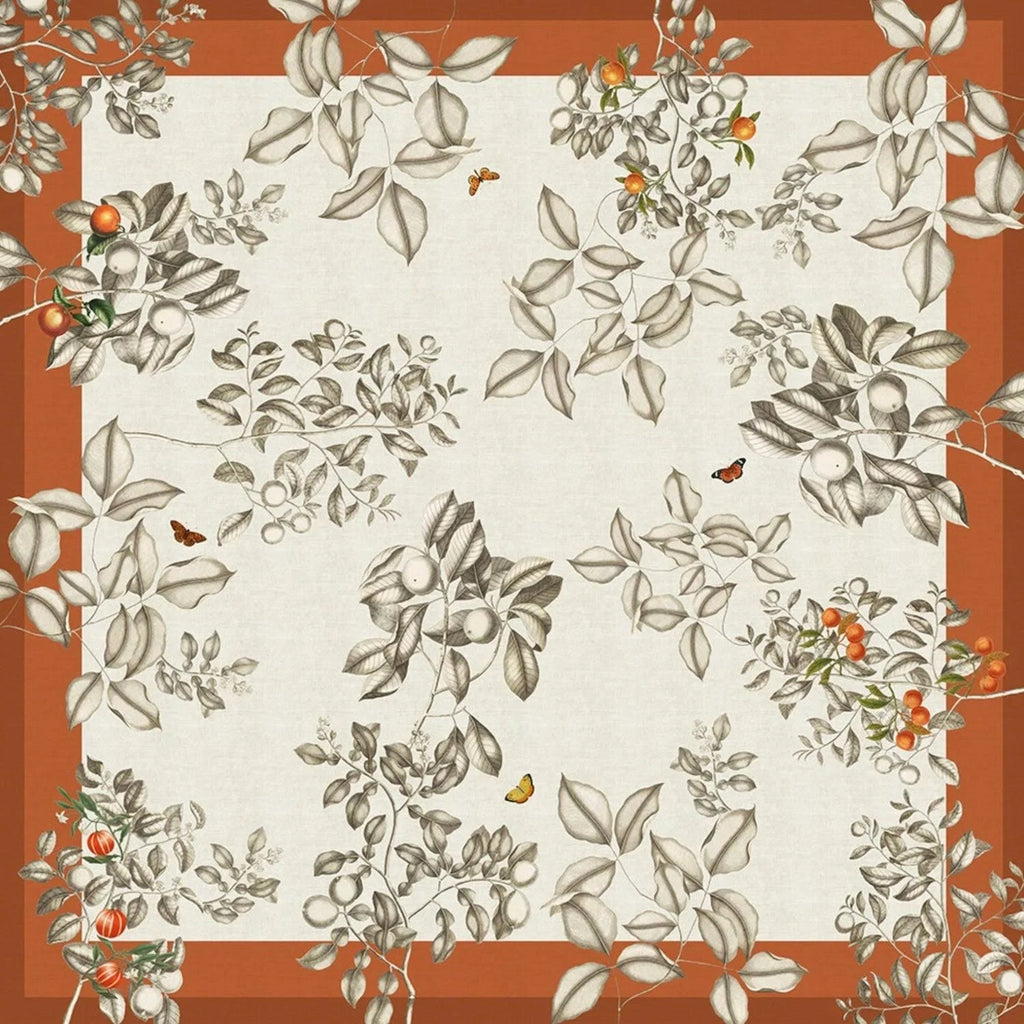 Embrace the rich tones of the season with the Mandarines Rouille Tablerunner. Featuring robust orange mandarins and delicate butterflies against a leafy cream backdrop and bold terracotta border, the Mandarines Rouille Collection evokes effortless elegance in every table setting.
