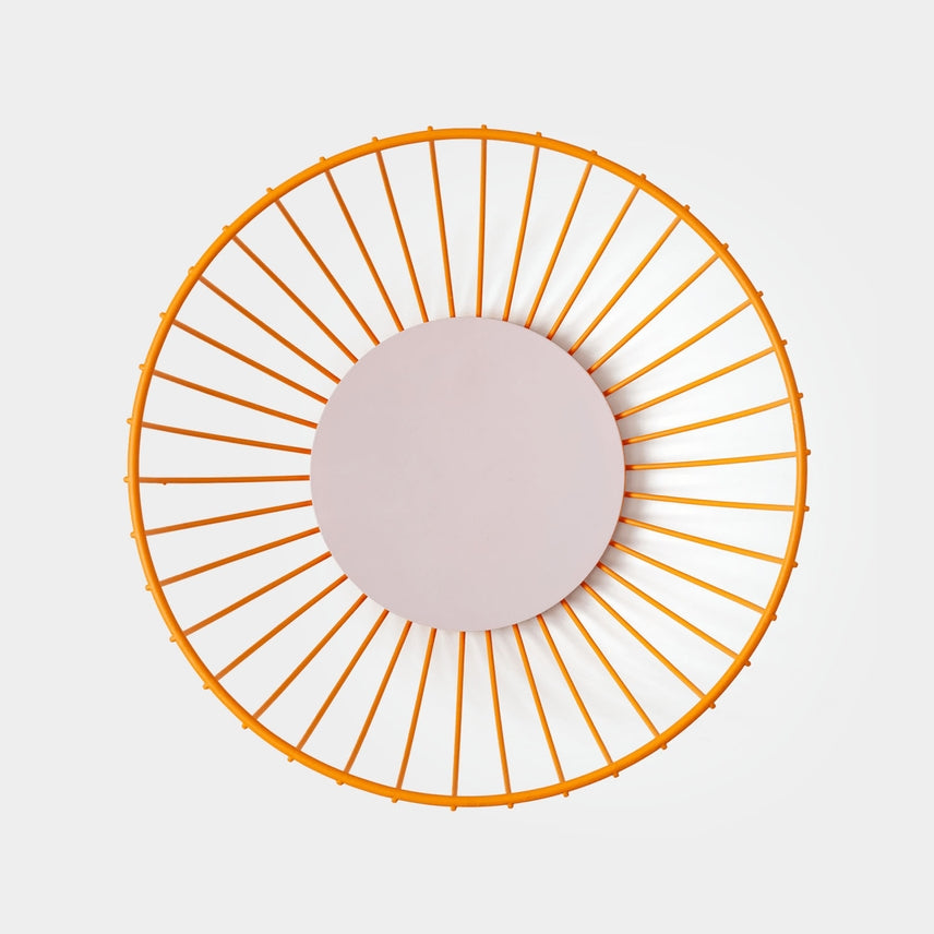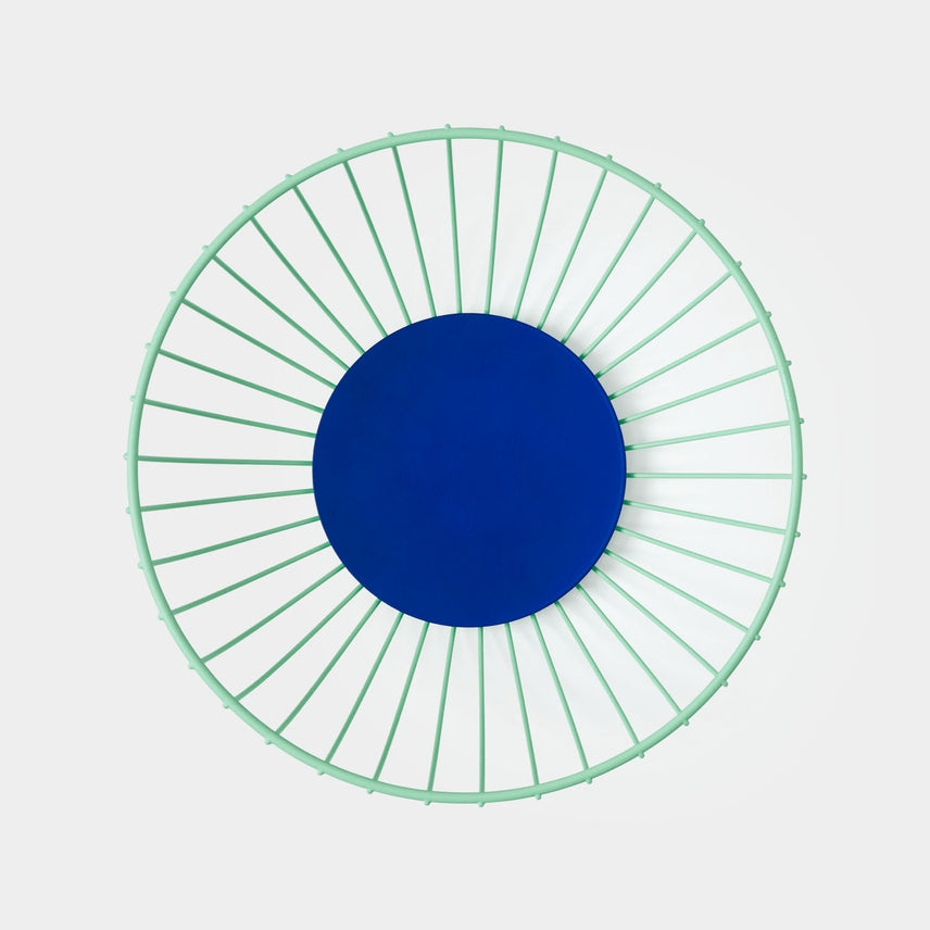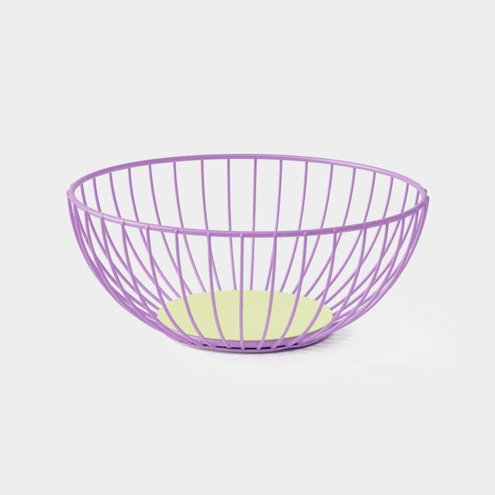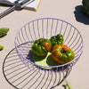 Formed from a hypnotizing pattern of steel wire, these minimalist Fruit Baskets will introduce a contemporary quality to any domestic space. Singular wires are arranged geometrically in a circle and collectively cast a unique shadow on their surroundings.