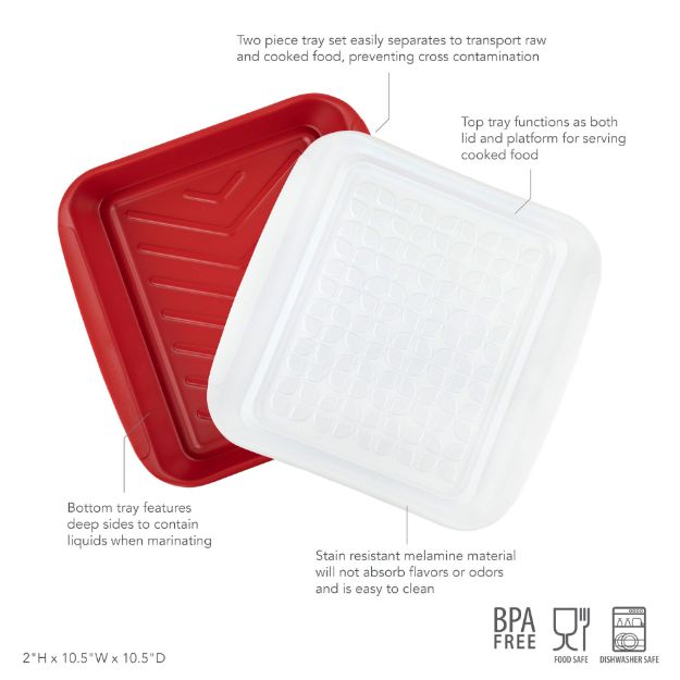 - Prevents Contamination: The removable two-piece tray easily separates to marinate and transport raw meats from cook food to help prevent contamination and foodborne illness.
