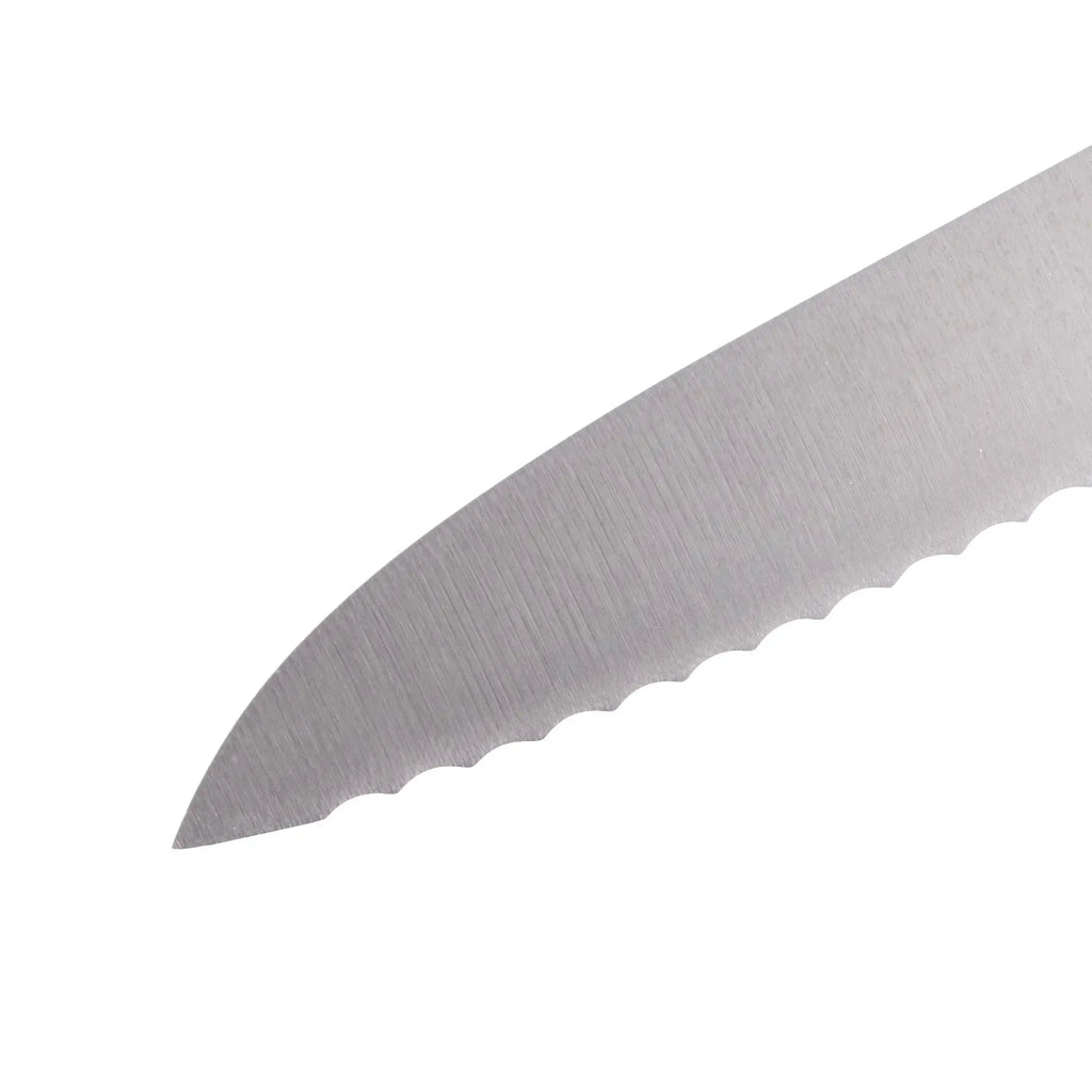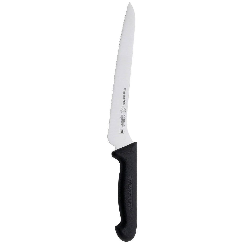 This unique Messermeister Pro Series 8" Scalloped Offset Knife is highly versatile.