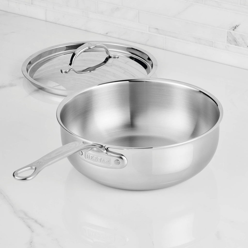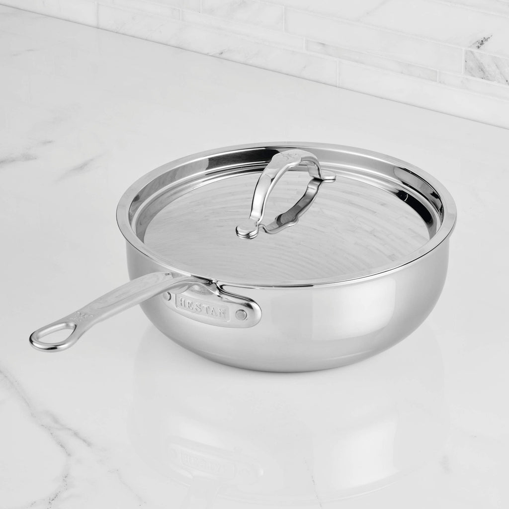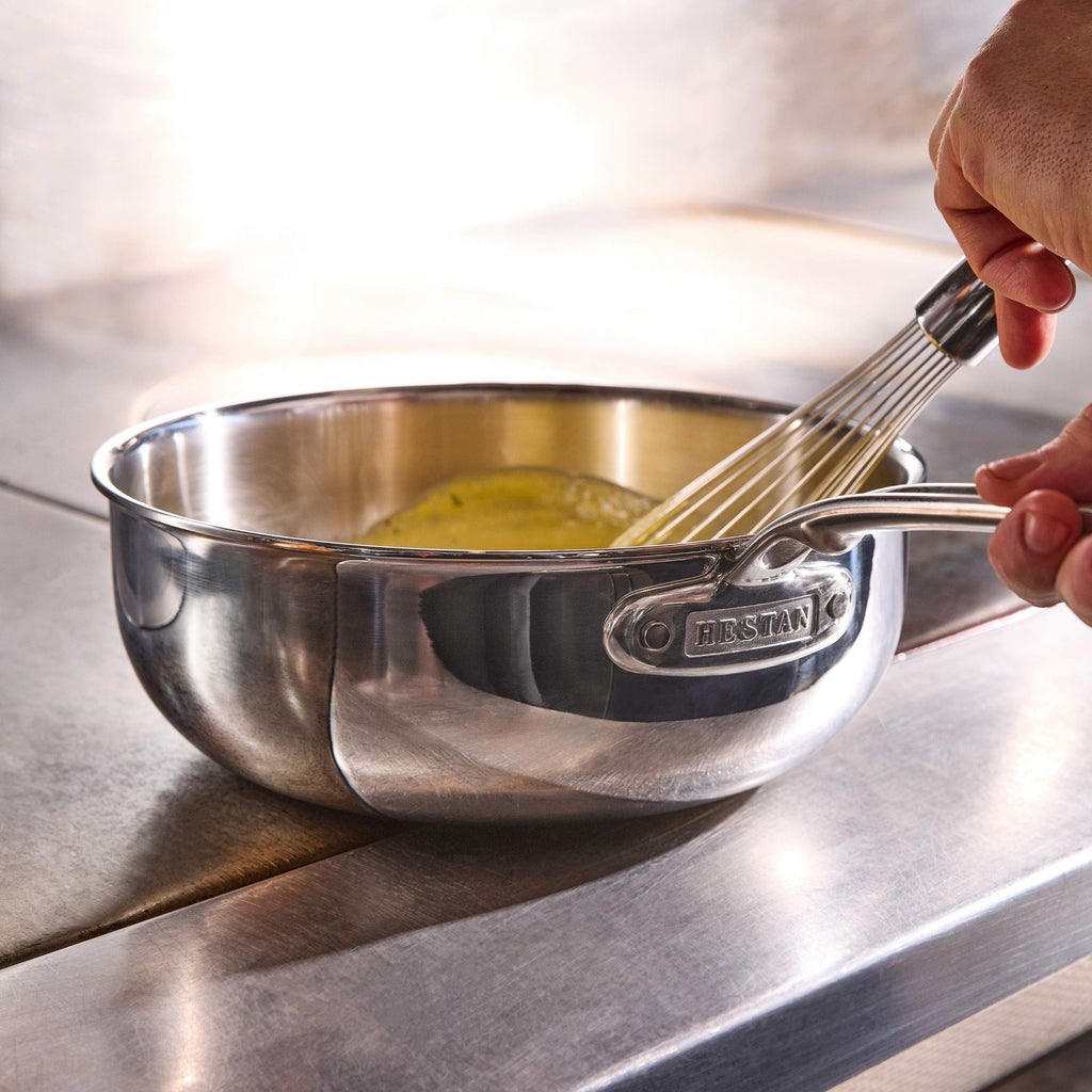 Elegant by design. Engineered for performance. ProBond® Luxe 3.5-Quart and 5-Quart Professional Clad Stainless Steel Essential Pan with Lid is part of the award-winning ProBond® Luxe collection, recognized for innovation and craftsmanship. Designed in Napa and handcrafted in Italy, this professional clad stainless steel cookware showcases the power of Hestan’s ProCore™ aluminum core for 35% greater heat conductivity, and a radiant polished stainless steel exterior for lasting brilliance.