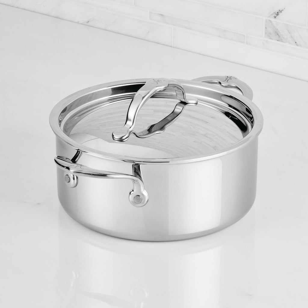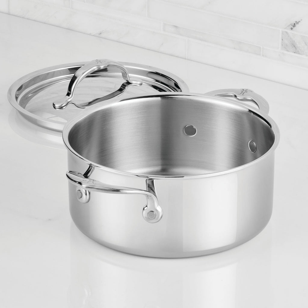 Winner of the 2025 Red Dot design award, the professional-grade ProBond® Luxe series from Hestan combines cutting-edge innovation, best-in-class performance and expert Italian craftsmanship. The collection's ProCore™ aluminum core promotes 35% greater heat conductivity than conventional aluminum-clad cookware while the triple-bonded stainless-steel construction makes it ideal for use on all cooktops, including induction. Seamless handles designed by renowned Chef Thomas Keller deliver superior comfort and control. Jewel-polished stainless-steel exteriors boast a brilliant, lasting finish that looks new – even after years of use. Perfect for soup, this versatile pan also excels at simmering stews, preparing sauces and cooking grains.