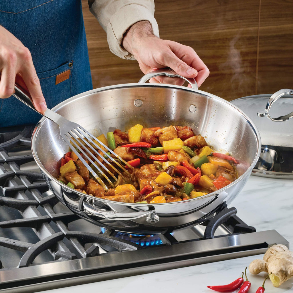 ProBond® Luxe™ Polished Clad Stainless Steel Wok with Dome Lid, 14-Inch