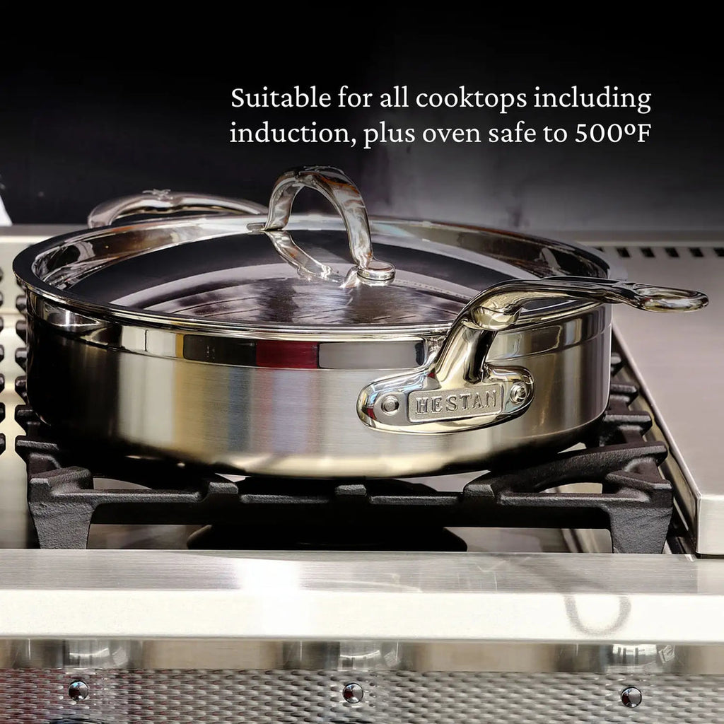 OVEN SAFE - Clad stainless steel saute pan is broiler safe and oven safe to 500°F for cooking versatility.