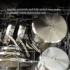 SEALED, FLARED RIMS - Pots and pans are equipped with sealed rims that are encapsulated in stainless steel to protect against delamination and pitting and flared to offer perfect drip-free pouring.