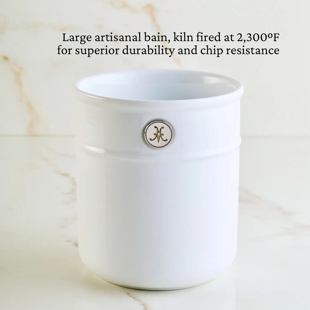 HIGHEST-GRADE PORCELAIN: The dense porcelain composition of fine clay and hard precious minerals is fired at temperatures far hotter than traditional stoneware, resulting in a more durable and chip-resistant product. The bain marie’s extra large capacity enables it to hold a wealth of kitchen tools and utensils.