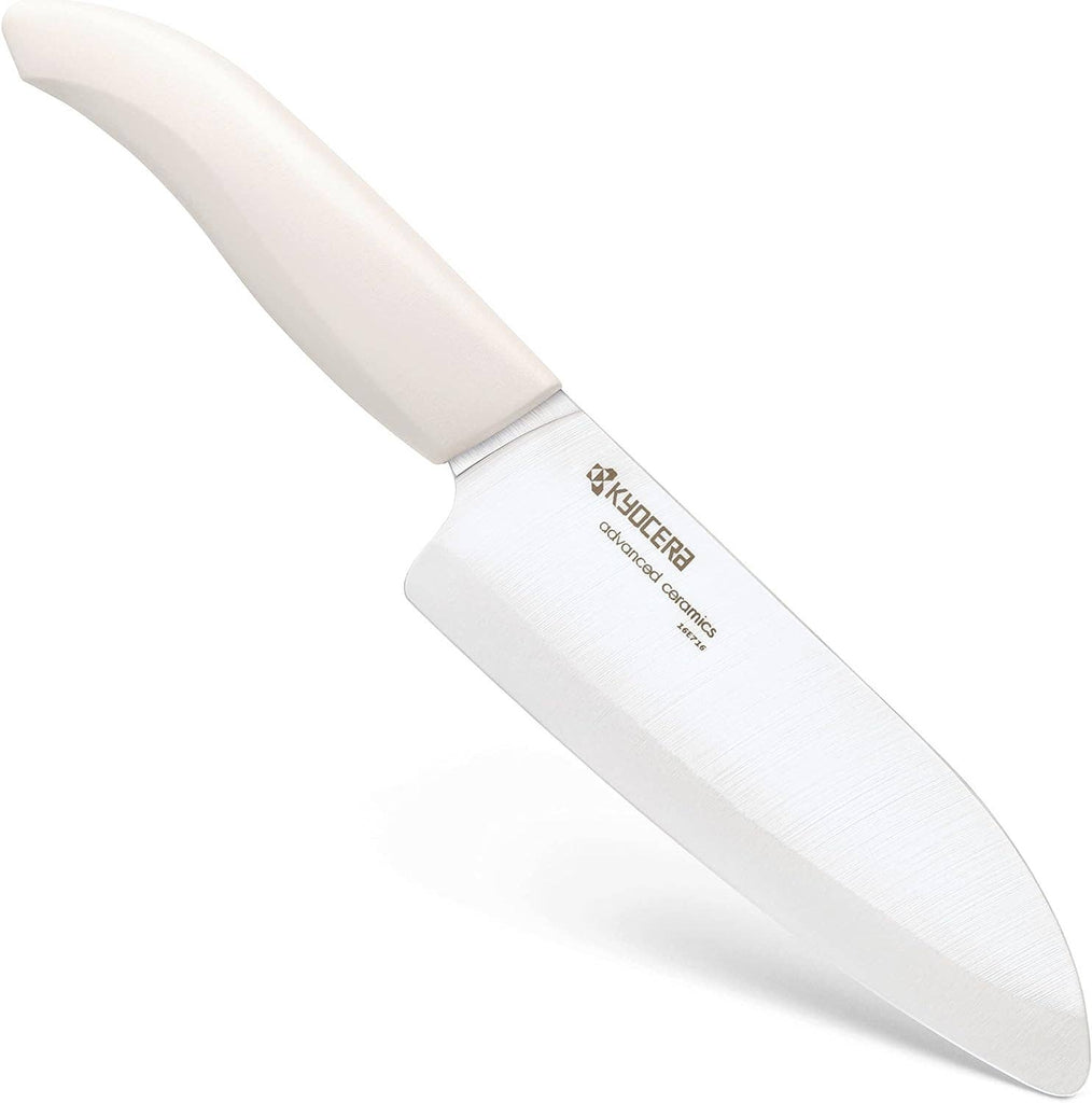 The Revolution 5.5" Santoku is a traditional Japanese shape with a straight cutting edge rounded shoulder and curved handle to provide control during slicing, dicing, or mincing fruits, vegetables, and boneless meats. Our most popular knife features an ultra-sharp, long-lasting, non-corrosive ceramic blade. Available in several colors.