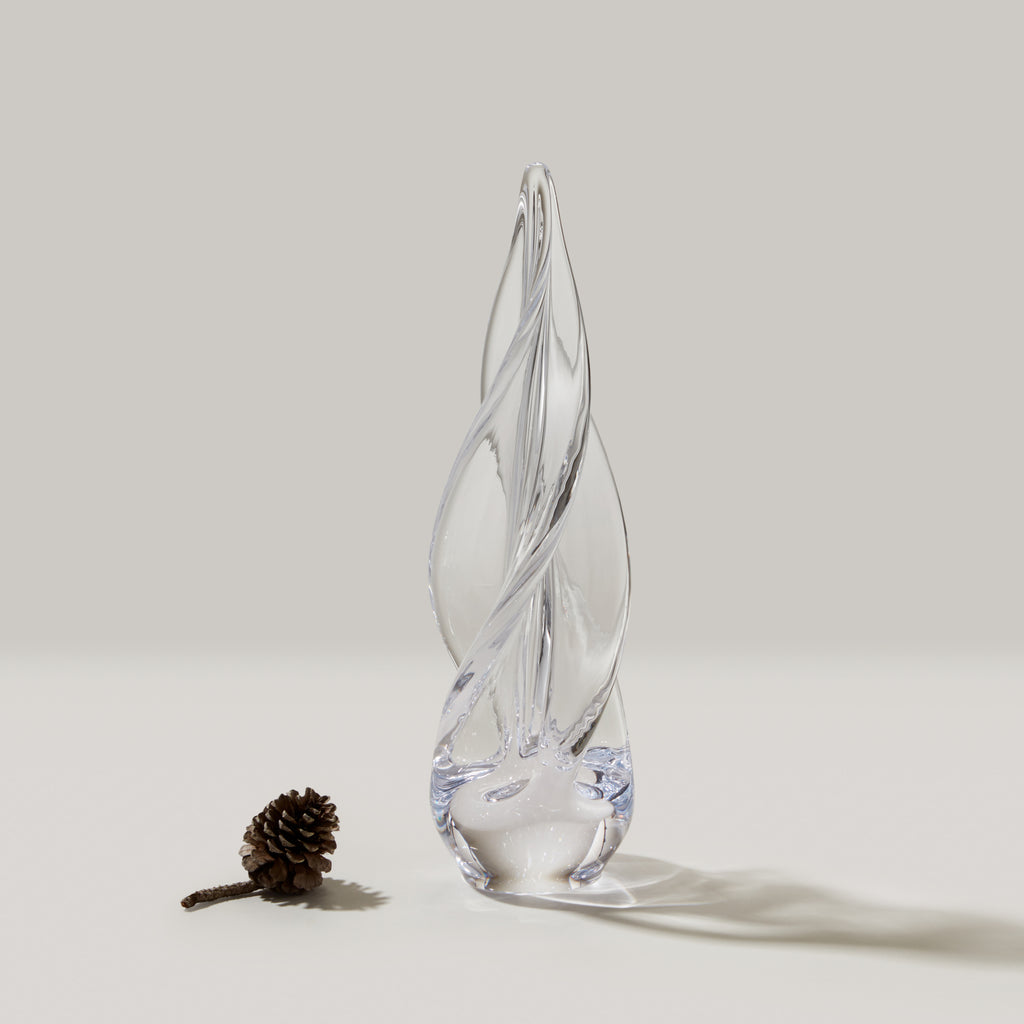 Rooted in Simon Pearce tradition, the Four-Sided Spiral Evergreen reimagines the spiral flame design that inspired our very first tree. Each side flows with hand-formed branches that echo wind moving through the forest—a graceful new take on a beloved silhouette.
