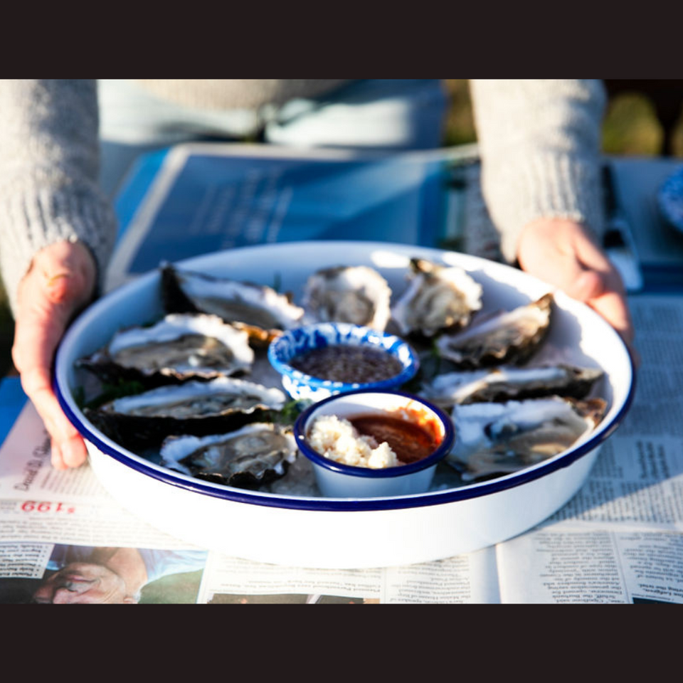 Our enamelware Deep Dish Pizza Pan doubles as a Cocktail Tray with tall sides to keep everything where it needs to be. Safe for the oven, we highly recommend baking all the things in this beauty.